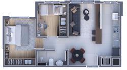 SALA DE JANTAR E COZINHA COM CONCEITO ABERTO